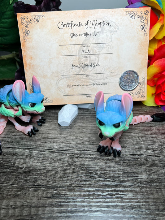 Each pet comes with a sealed adoption certificate, complete with biography, name, age and more!
