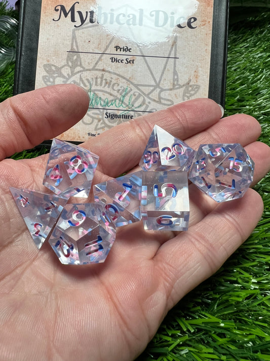Pride - Standard 7 Set Dice - Fine Art Dice - Transexual Flag Numbers