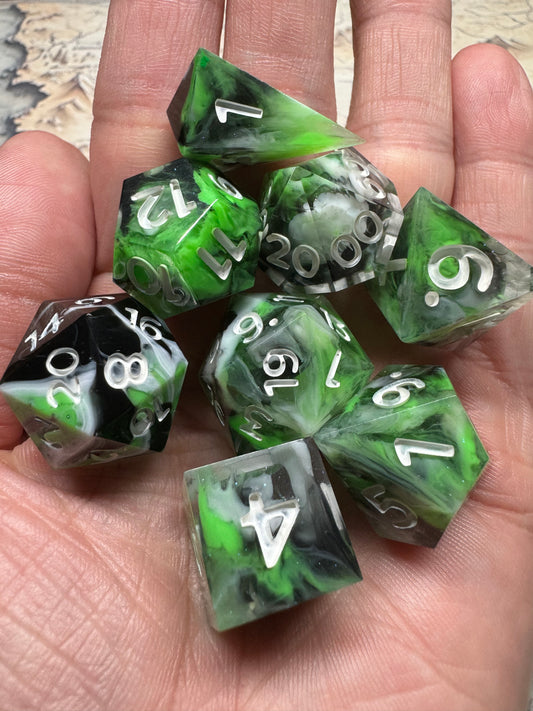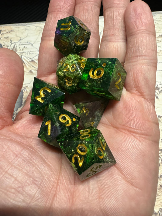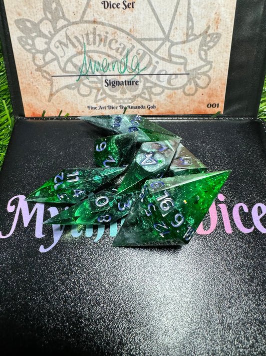 Corrupted Emerald - 7 Set Dice - Fine Art Dice