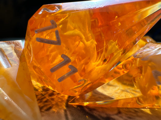 Every die is handmade, sanded, and polished to a glossy shine! We ensure all of our Mythical Dice are high quality and as flawless as possible.