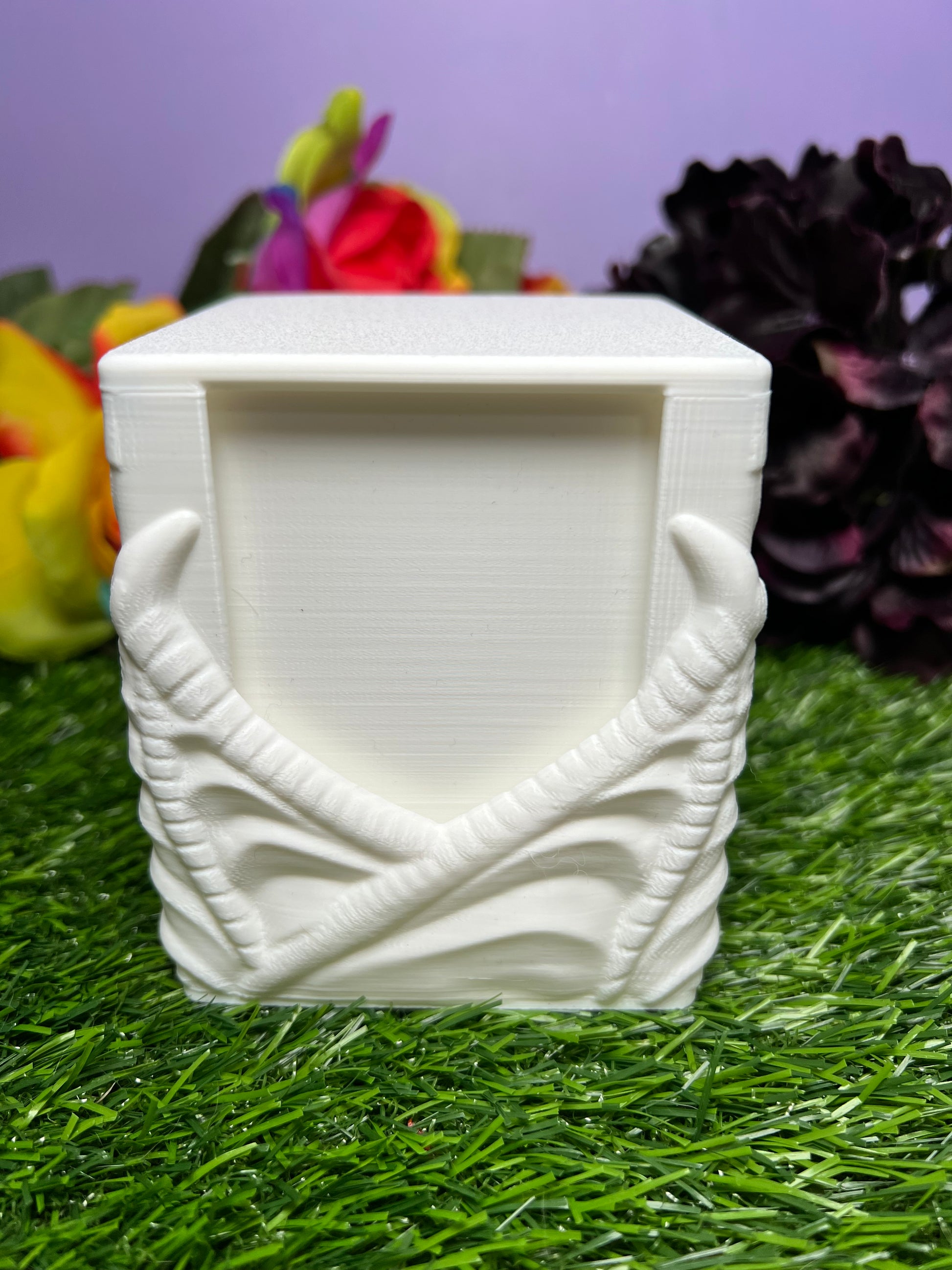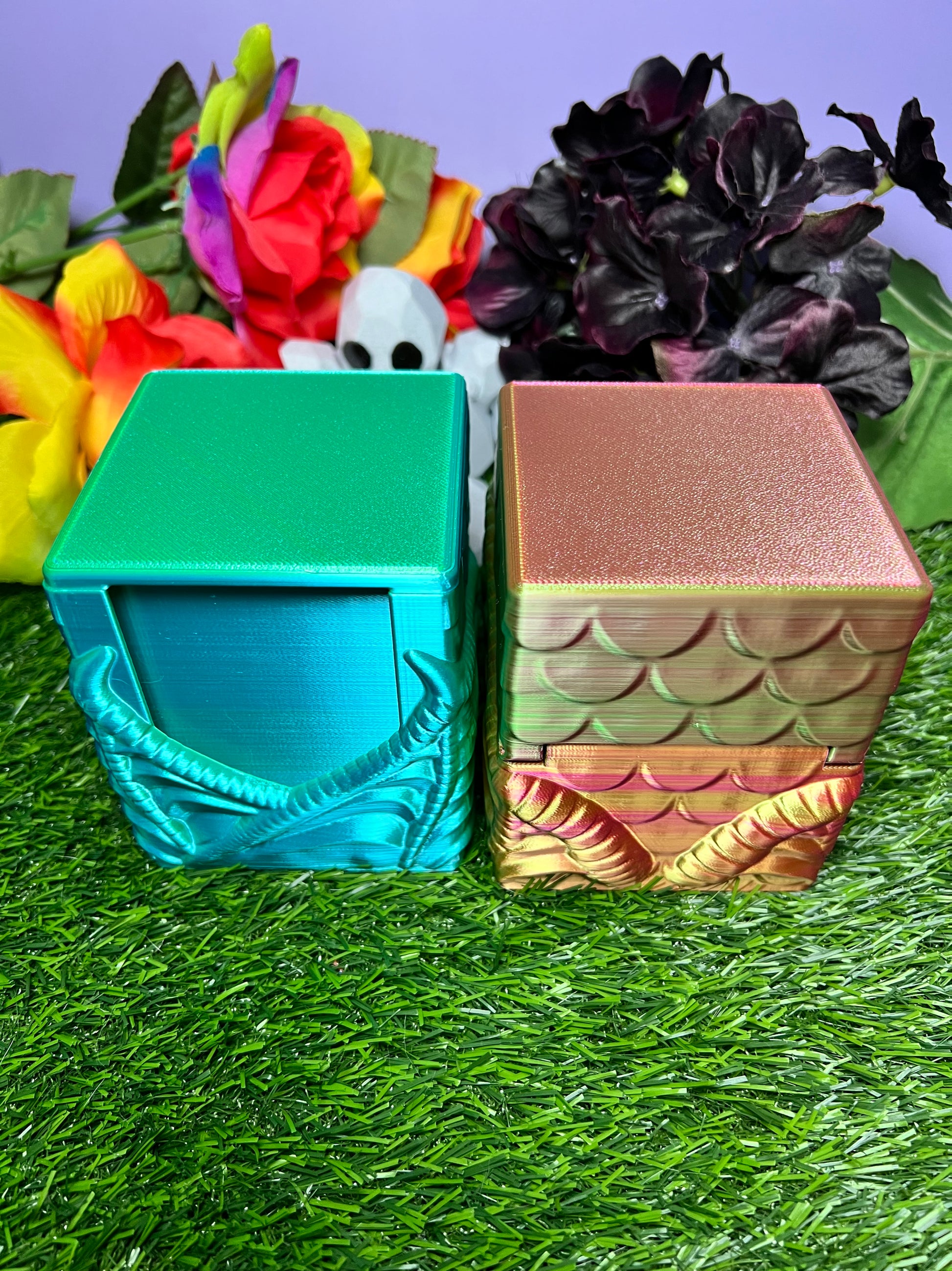 Show up to your next game night in style with our Commander Deck Boxes.  Featuring a dragon wing design, magnetic top, and a front window to place your commander. The boxes can hold a double sleeved commander deck, even a token deck!