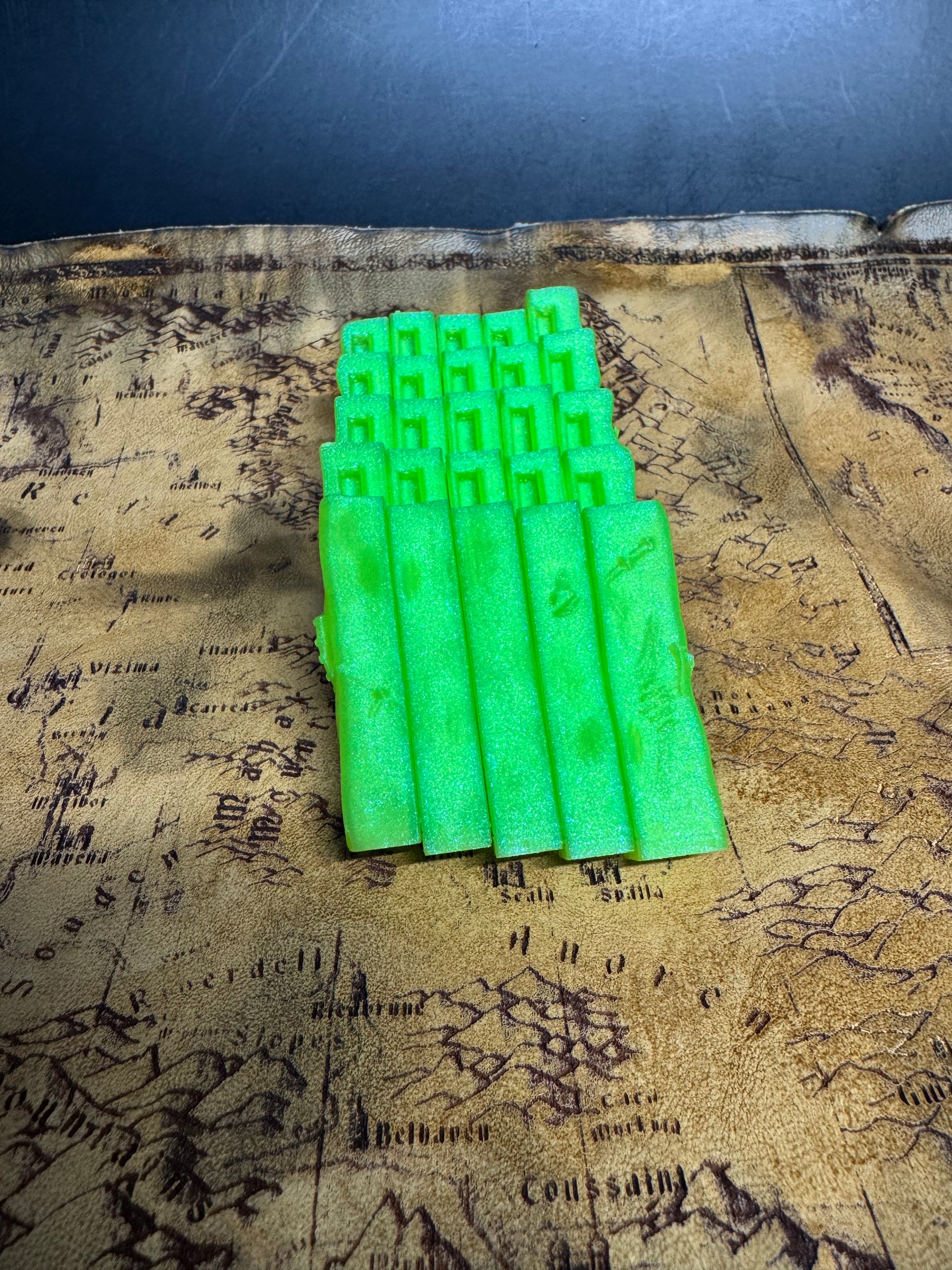 Bring your favorite monster to your next tabletop game! Acid green in color, filled with the bones of his victims, this little cube will keep you company, and keep boredom away. Twenty-five sliding segments allow the cube to wobble and morph like a real cube.