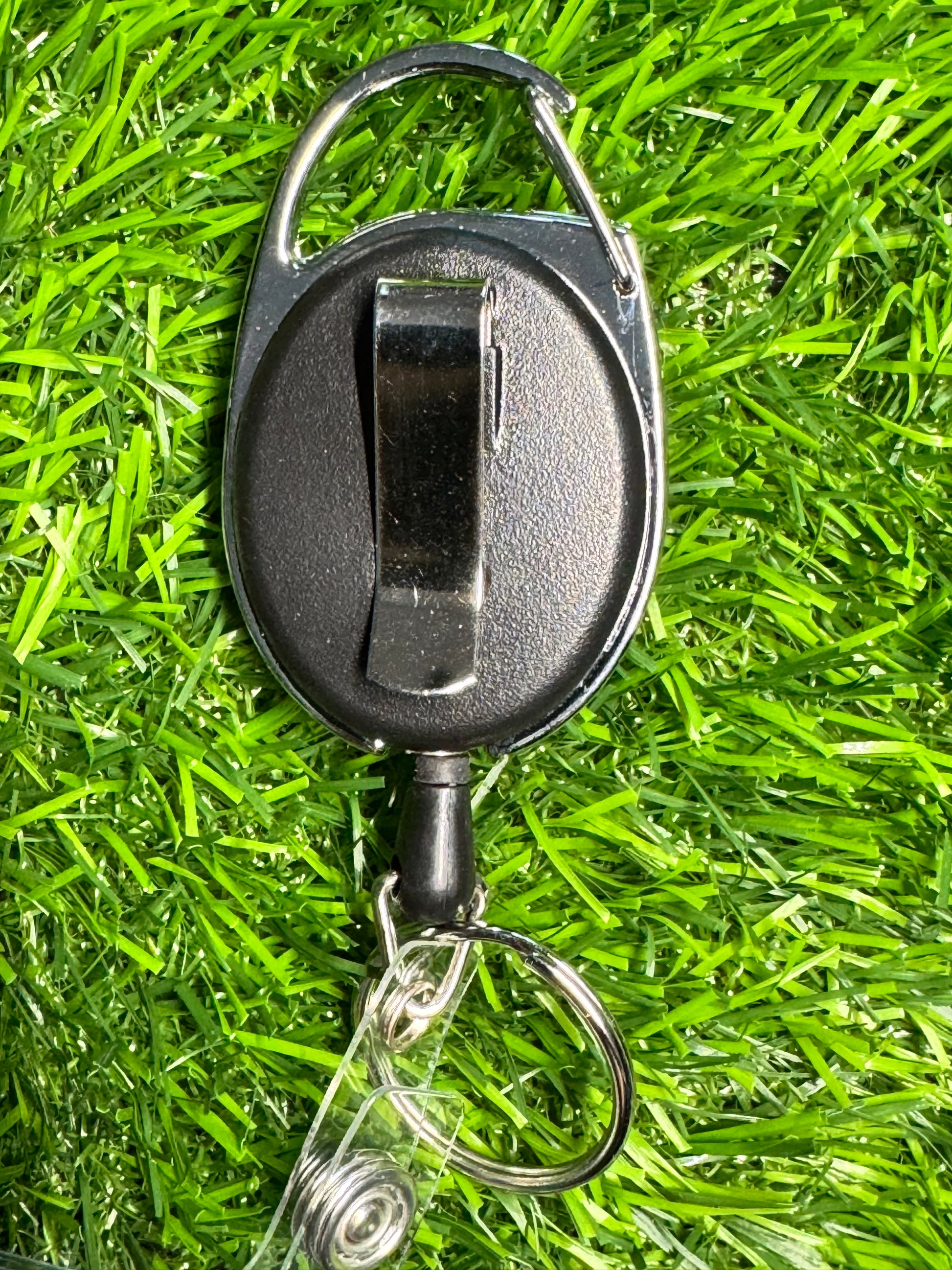 - Badge Reel has belt clip with lanyard or alligator clip options